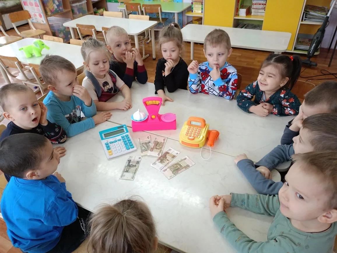 В рамках реализации «Всероссийских просветительских эстафет «Мои финансы» в нашем детском саду прошли занятия по финансовой грамотности по теме "Как экономить деньги", "Путешествие с Монеточкой по стране Экономике", "Почему взрослые работают?", "Для чего нужны расходы?", "Правила семейного бюджета", "Откуда берутся деньги?", "Что такое деньги?", "Кукла Маша в магазине". Дети узнали историю появления денег, их виды (монеты, купюры, электронные деньги). Проведены игры, имитирующие обмен товарами и покупку вещей.